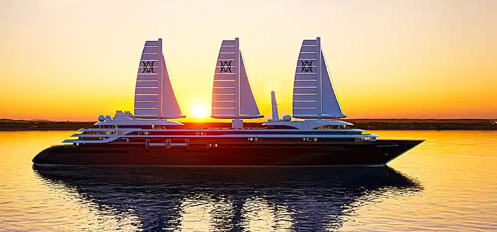 Als „Atlas Adventurer“: Von Mystic Cruises in China bestellter Segelcruiser kommt für US-Tochter Atlas Ocean Cruises in Fahrt