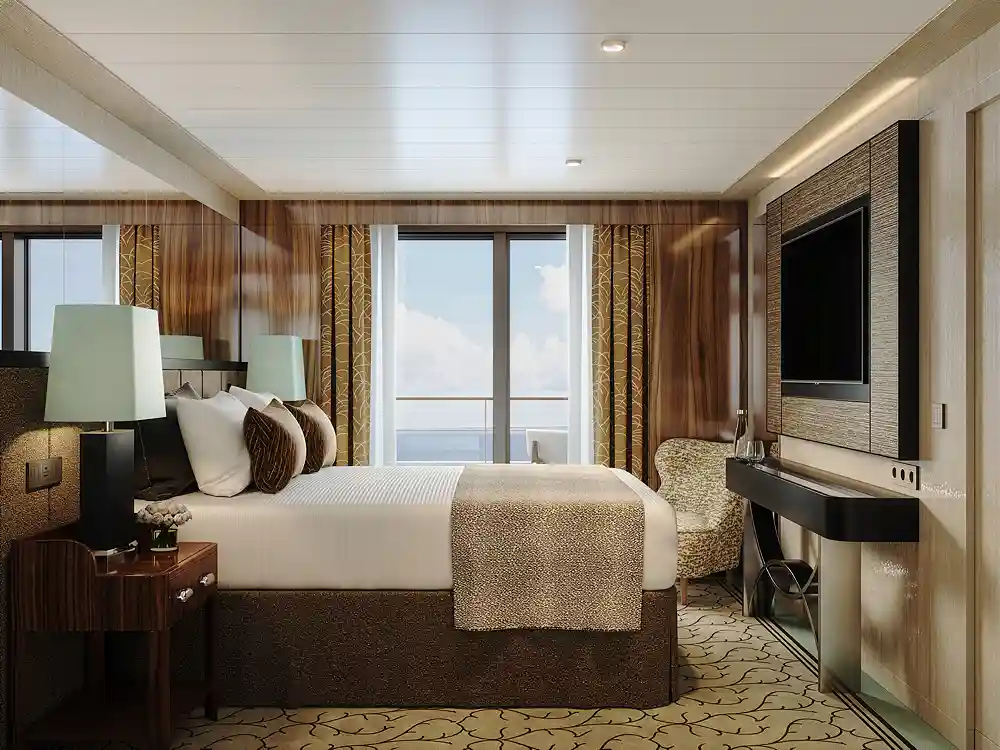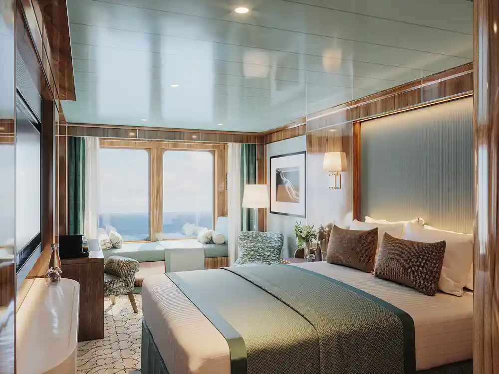 The suite collection is organized across three categories: Signature Collection, Concierge Collection, and Reserve Collection: offering increasing levels of space and personalization. The yacht will feature 98 Signature Collection suites, 72 Concierge Collection suites, and an exclusive enclave of 30 Reserve Collection suites.
