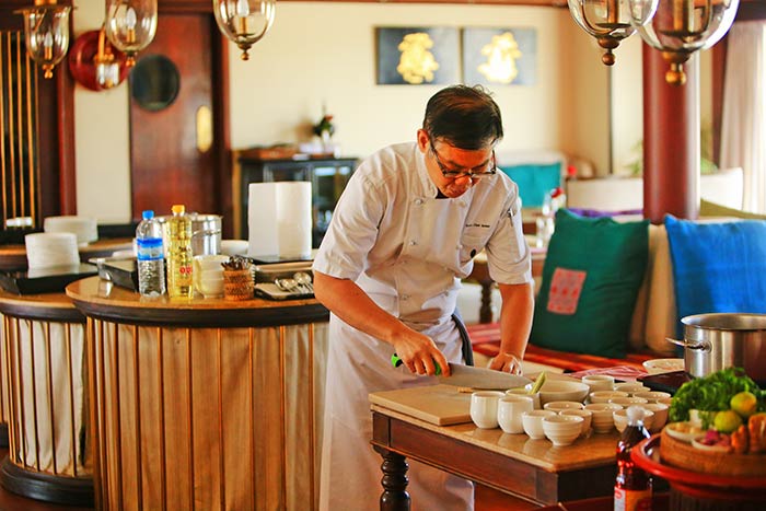 Die SANCTUARY ANANDA gehört zu den exklusivsten Schiffen im Land. Der Stil erinnert an moderne Boutique Hotels, ein Pool, Spa, Bibliothek und diverse Lounges runden das Angebot ab. Mit 21 Kabinen ist das Schiff sehr angenehm proportioniert. Der geringe Tiefgang ermöglicht im Regelfall ein direktes Anlanden der gewählten Destination, ohne dass Tenderboote benötigt würden. Zu meist steht eine Anlandung per Tag auf der Agenda also bleibt genügend Zeit, von Deck aus in Ruhe und entspannt die vorbeiziehende Landschaft zu genießen. Die Soft Drinks an der vorzüglichen Bar sind im Pauschalpreis inkludiert, kein Grund zu übermäßiger Zurückhaltung. Größter Aktivposten ist gewiss der thailändische Chefkoch vor Ort, der über 20 Jahre lang zuvor im berühmten Oriental Hotel in Bangkok die Geschicke bestimmte. Er gibt in zwei Kochkursen sein Wissen an die Passagiere weiter und fokussiert sowohl auf die sehr milde und schmackhafte burmesische Küche wie auch die Küche seines Heimatlandes. Einführungen der Guides in die Traditionen Myanmars ergänzen das sehr differenzierte Angebot an Deck.