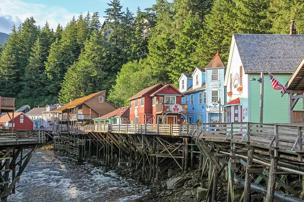 Ketchikan, Alaska – Die beliebteste Fischerstadt Alaskas bietet optimale Bedingungen für den Fang von Wildlachs oder zur Beobachtung der heimischen Weißkopfseeadler. Die historische Creek Street ist von einer bunten Mischung aus Geschäften mit einer Vielzahl von lokalen Künstlern gesäumt. Ketchikan ist außerdem für seine beeindruckende Ausstellung authentischer Totempfähle aus dem 19. Jahrhundert bekannt.
