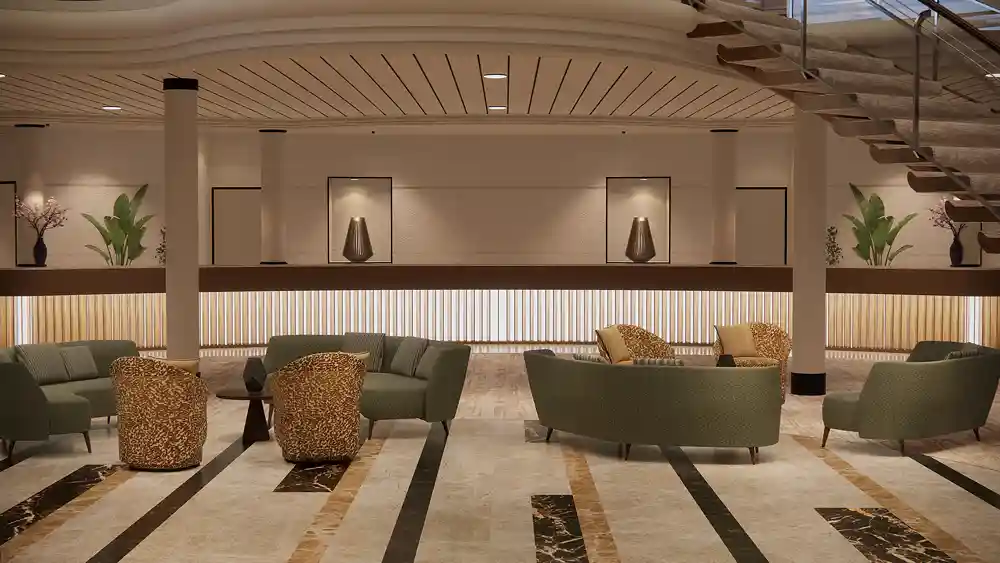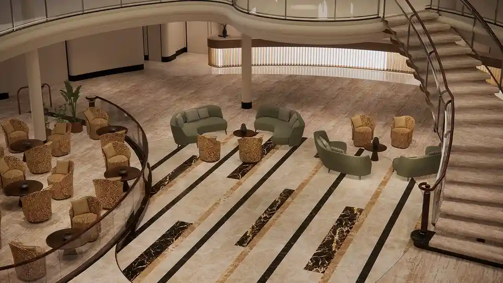 In den öffentlichen Bereichen erhält das Atrium ein Facelifting. Dabei wird der Flügel umgestellt, es kommen weitere Sitzplätze hinzu, und das große Mosaik von DeCastelli erhält einen neuen Platz. Einen frischen Look bekommen zudem die Crystal Cove, eine Lounge-Bar auf Deck 5, die Treppenaufgänge auf Deck 5 und 6, der Starlite Club mit der Tanzfläche sowie das Bistro, in dem sich die Gäste gerne zu einer Tasse Kaffee oder auf ein Gläschen Champagner treffen.