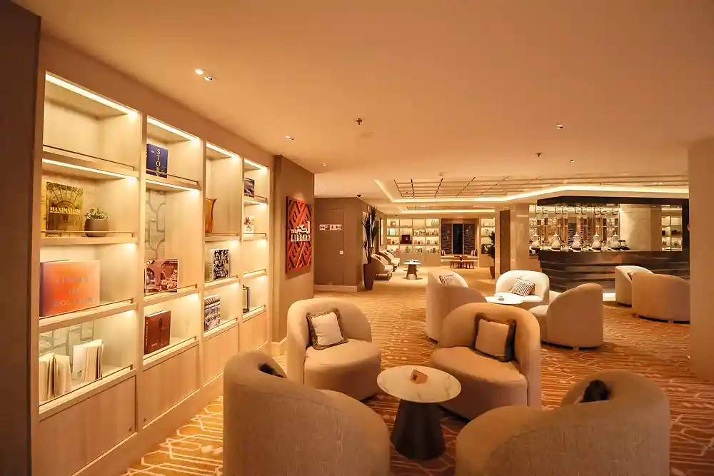 Gäste, die das exklusive „Khuzama“-Suiten-Programm gebucht haben, werden bereits mit Datteln, Gebäck und einem Lächeln am separaten Counter empfangen.