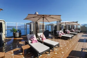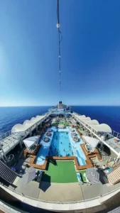 Mittlerweile taucht die untergehende Sonne die Silhouette der Stadt in goldenes Licht. Während im nahegelegenen Karaköy-Viertel der Ruf des Muezzins aus der Moschee schallt, ruft der Kreuzfahrtdirektor auf Englisch und Arabisch zur Sailaway-Party. Auf dem Pooldeck herrscht ausgelassene Partystimmung. Theaterensemble und Clowns liefern eine kurze Show, der DJ mischt arabische Beats mit westlichen Rhythmen. Während eine verschleierte Mutter mit ihrem kleinen Sohn lacht, tanzt daneben ein deutsches Paar im Takt der Musik. In der Hand: farbenfrohe Gläser mit Mango, Minze, Hibiskus…
