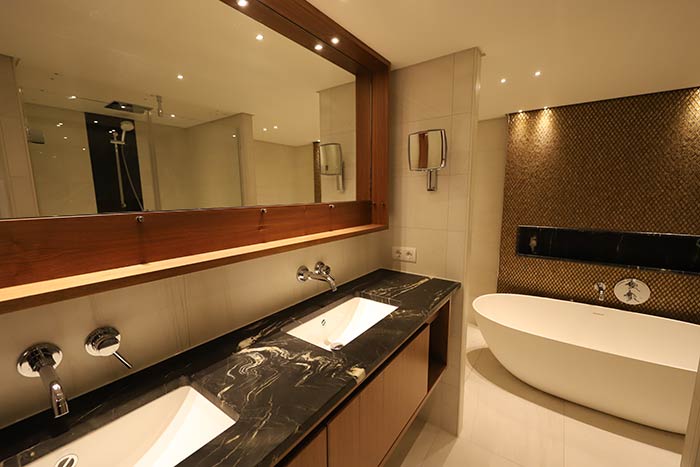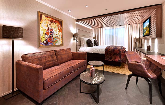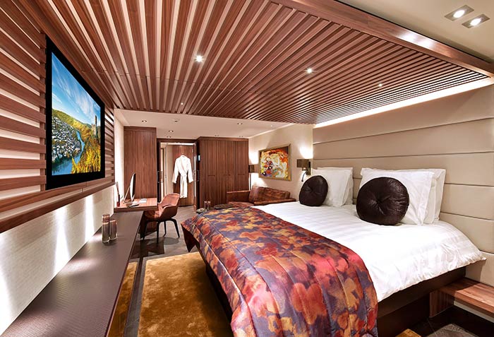 Auch die 98 Kabinen mit ihren Größen von 19 bis 66 Quadratmetern können mit denen auf Hochseeschiffen konkurrieren.