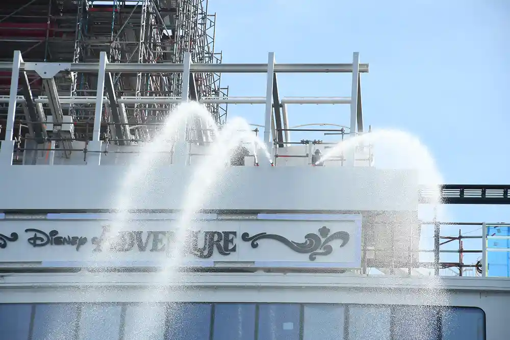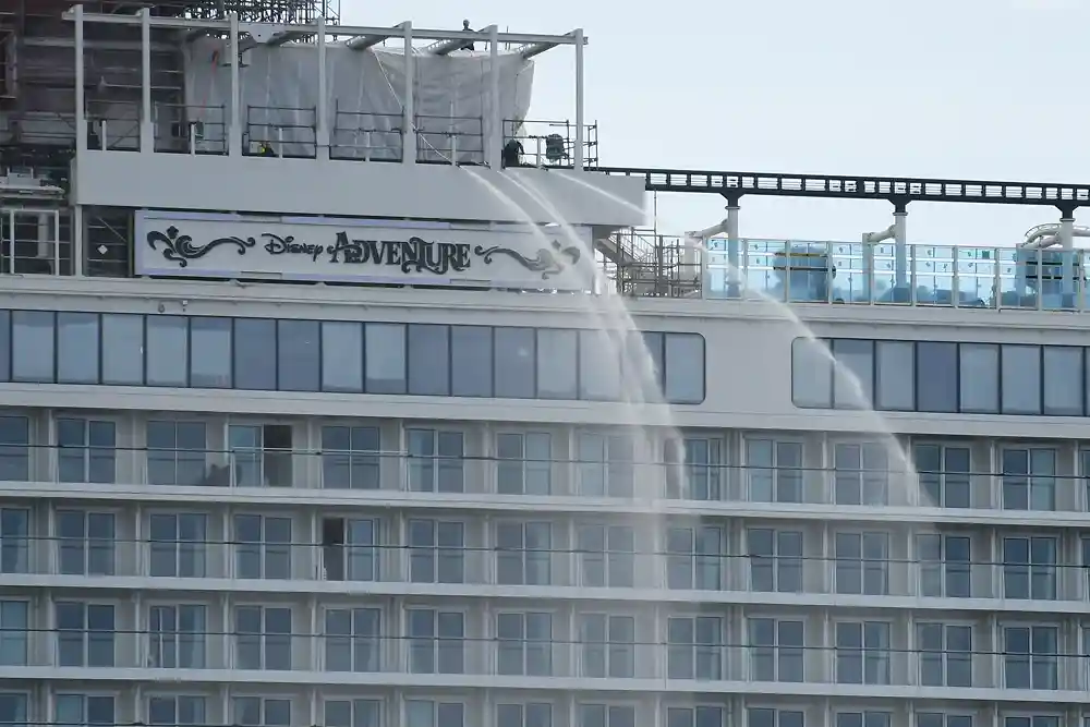Die Vorbereitungen für die Abfahrt der Disney Adventure sollen am Sonntag abgeschlossen werden und das Schiff seeklar sein. Gegen Mitternacht sollen Schleppern das große Schiff dann von der Werft ins Fahrwasser bringen.