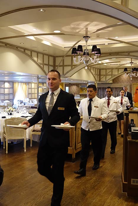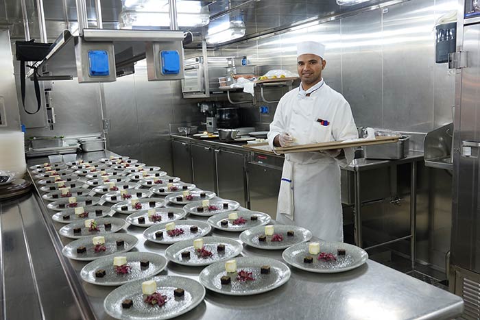 Seidig, saftig, frisch – der 2009er-Jahrgang von Dom Pérignon verführt mit den Aromen von Guave und Passionsfrucht. Was passt besser dazu als Jakobsmuschel mit Gänsestopfleber und gerösteter Ananas? Der Vintage-Champagner aus dem Jahr 2006 wird bereits rar, so beliebt ist sein opulenter Charakter mit einer salzigen Note, die ans Meer erinnert. Er ist einem Trüffelrisotto mit altem Parmesan ebenso gewachsen wie einem Hummer in Currysoße mit Kokosschaum. Auch Bernhard Klotz, Senior Director Culinary Oceania Cruises & Regent Seven Seas Cruises ist begeistert vom neuen Konzept. Der Österreicher arbeitet seit 20 Jahren für die beiden Kreuzfahrtmarken und sagt: „So etwas habe ich in meiner Laufbahn noch nicht erlebt.” Sein Favorit ist der 2004er-Rosé, kombiniert mit Wagyu-Sashimi und Perlita-Kaviar in einer Orangen-Soja-Reduktion. Aber auch zum Käse passt der Vintage-Rosé mit seinen Erdbeer- und Zitrusaromen hervorragend. Zum Abschluss des Sechs-Gänge-Menüs schließt sich der Kreis mit einem weiteren Glas des 2009er-Champagners. Dazu wird ein Eis aus grünem Tee mit Kirschblütenaroma auf Baiser serviert, dekoriert mit einem Mandelkrokantring und verfeinert mit Limonenkaviar. Gewagt und doch sehr stimmig. Künftig soll diese exklusive Reise durch die Welt der Vintage-Champagnerjahrgänge mindestens einmal pro Kreuzfahrt im Spezialitätenrestaurant „La Reserve“ stattfinden. Es bietet Raum für 24 Passagiere. Der Preis liegt bei stolzen 295 US-Dollar, plus 18 Prozent Trinkgeld. Allerdings trinkt auch jeder Passagier bei diesem Dinner insgesamt etwa eine Flasche feinsten Champagner und dazu werden die edelsten Speisen serviert. „Wir geben für die Kulinarik mehr Geld pro Passagier und Gast aus, als jede andere Reederei“, erklärt James Rodriguez, Executive Vice President Sales & Marketing von Oceania Cruises. „Und wir arbeiten kontinuierlich daran, noch besser zu werden.“ So wurden im Mai 2018 die Speisekarten für den Grand Dining Room erweitert, insgesamt stehen hier nun 800 Gerichte zur Auswahl. „Die hervorragende Küche ist unser Markenzeichen. Und Oceania-Gäste sind Foodies.“ Das Durchschnittsalter der Passagiere liege bei 64 bis 67 Jahren, erklärt der Manager. Im Gegensatz zur Luxusschwester Regent seien die Oceania-Passagiere jünger, aktiver und progressiver, neugierige Entdecker sozusagen. Gleichzeitig bleiben sie ihrer Lieblingsmarke aber auch sehr treu: Mehr als die Hälfte der Gäste an Bord ist schon einmal mit Oceania Cruises gefahren.