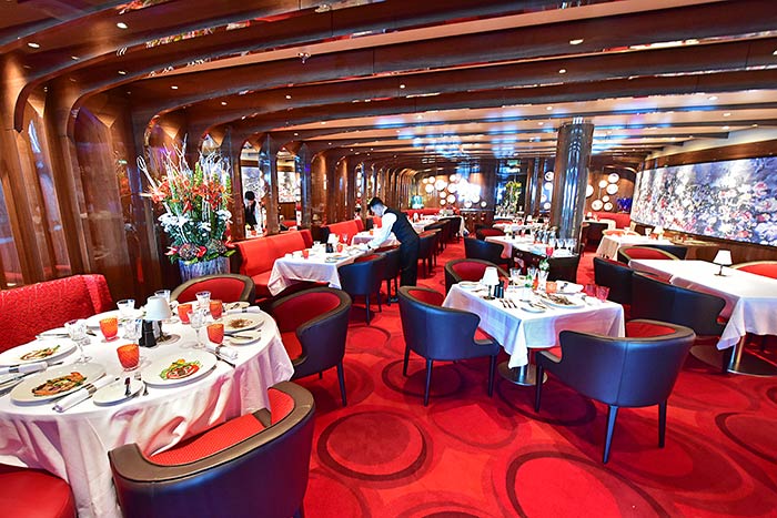 Vom Atrium aus geht es entweder nach achtern zu den kulinarischen Höhepunkten oder nach vorn zum Entertainment. Bevor es dort ins Theater geht, wartet der „Music Walk“. Im Stil einer Festival-Architektur gibt es dort ab 19 Uhr ein breites Programm für völlig unterschiedliche Geschmäcker. Der „Rolling Stone Rock Room“ ist dabei neben „Billboard Aboard“ der Einstieg. Vom Künstler mit klassischer Ausrichtung bis hin zum harten Rock, ist alles dabei. Eine feste Station ist aber der über zwei Decks gestaltete „Blues Club“. Die 2014 begonnene Kooperation von BB Kings Blues Club hat hier ihren Höhepunkt erreicht. „Wir haben gemerkt, dass gerade BB Kings Blues Club mit diesem Hauch von Memphis Blues bei den Gästen ungeheuer gut ankommt. Es ist dieses Unbeschwerte, die Lässigkeit“, sagt Orlando Ashfort. Gerade zum Ausklang eines Abends ist dieses Programm von 21.30 bis Mitternacht angelegt. Der Höhepunkt im Entertainment ist das Theater im Vorschiff. Mit rund 1000 Plätzen ist das Theater „The World Stage“ der musikalische Anziehungspunkt. Mit der 270-Grad-LED-Wand bietet das Theater auch visuelle Höhepunkte. Beim Entertainment ist Holland America auch der Linie treu geblieben. Statt Broadway mit Lasershow und Pyrotechnik sind klassische Klänge angesagt. Von Rumba bis Oper, von Klarinette bis Trompete reicht das Angebot. Bei der Akustik kann die „Weltbühne“ mit modernen Klanghäusern und Opern mithalten. 70 hochkarätige Darsteller und Musiker hat die Reederei allein für die ersten zwölf Monate in der „World Stage“ engagiert. Die kulinarischen Angebote wurden auf der NIEUW STATENDAM im Vergleich zu den anderen Schiffen der Flotte auch deutlich erweitert. Der legendäre HAL-Starkoch Rudi Sodamin hat auf der NIEUW STATENDAM sein erstes eigenes Restaurant. In dem Design eines historischen Holzseglers wurde auf Deck 2 das „Rudi’s Sel de Mer“ verwirklicht. Der Österreicher kocht dort bisweilen auch selbst und testet die neuen Kreationen und Ideen. Das Zuzahl-Restaurant ist auf Spezialitäten der Meere ausgerichtet, bietet aber auch vegetarische Gerichte. Für Freunde der asiatischen Küche ist auf Deck 10 das Tamarind zu finden. Ein weiteres Spezialitäten-Restaurant, das auch über einen schönen Außenbereich oberhalb des Heck-Pools hat. Wie bei allen HAL-Schiffen ist auch der Lido Market als Büffet-Restaurant auf Deck 9 zu finden. Als Ergänzung zu diesem besonders morgens und tagsüber stark frequentierten Restaurant gibt es auf Deck 10 noch den „New York Deli & Pizza“ – Eine kulinarische Insel, die besonders Poolgästen über den kleinen Hunger hilft und die Zahl der Gäste in Badebekleidung im Lido reduziert. ….