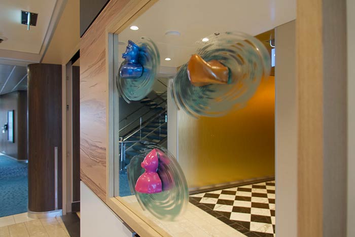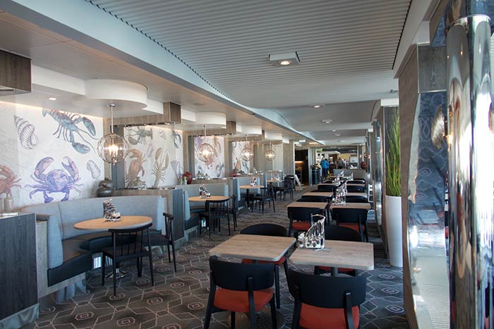 In der Schau Bar hingegen sitzen die, die es ernst meinen mit dem gesunden Lebensstil. Eine Mitarbeiterin des Spa erklärt den Unterschied zwischen Hab-dich-lieb- und Lass-das-lieber-Cholesterin. Ein älterer Herr läuft zufällig vorbei, bleibt ungläubig stehen und kommentiert entrüstet: „Aber doch nicht im Urlaub”. Vielleicht sogar gerade im Urlaub? Warum nicht in der neuen Umgebung die Chance nutzen, den eigenen Lebensstil zu überprüfen und Neues auszuprobieren? Wie wäre es mit einer Salat-Bowl im „Ganz schön Gesund”-Bistro, dem ersten TUI Cruises-Restaurant, dessen Fokus auf ausgewogener Ernährung und Superfood liegt.