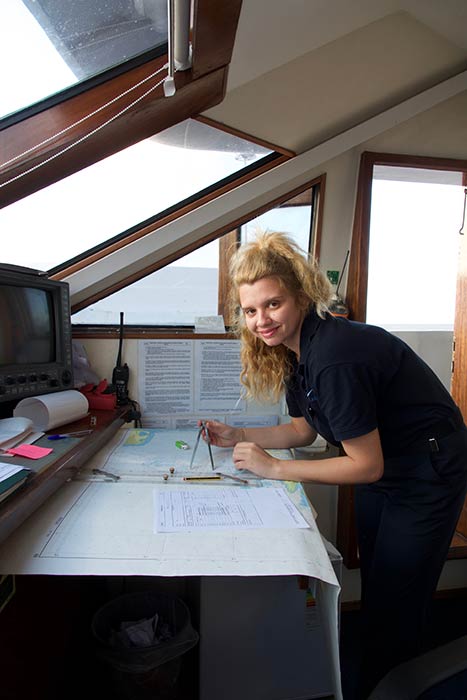 Junge Gesichter strahlen bei der Vorbereitung auf die Reise von der Unternehmenswebseite. Man biete authentische Erlebnisse, internationale Kleingruppen und nachhaltige Reisekonzepte, heißt es. Und tatsächlich treffen in der Lounge des Schiffes Junge und Junggebliebene, Paare und überdurchschnittlich viele allein reisende Frauen aufeinander. Von der 33-jährigen Mexikanerin, die zum ersten Mal in Europa und auf einem Schiff unterwegs ist, bis zur 78-jährigen Australierin, die schon mehr als 100 Länder im Gepäck hat. Die Stimmung ist entspannt, schnell lernen die 22 Passagiere einander kennen und erkunden ihr Schiff.