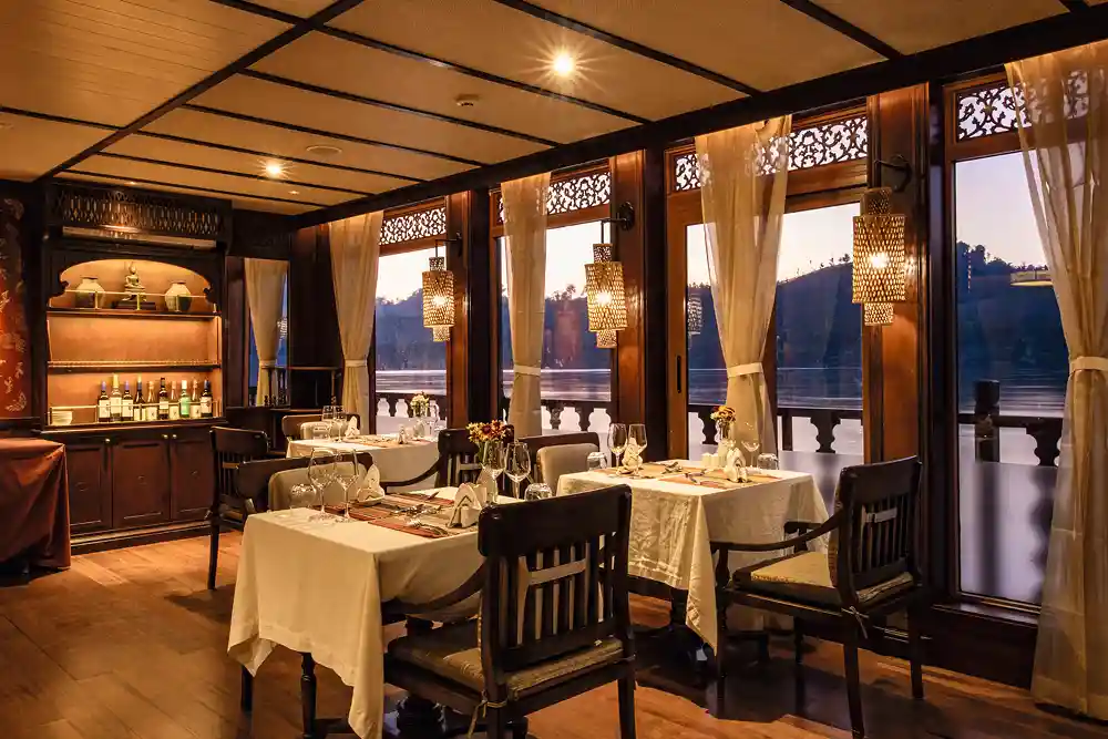 Zurück an Bord wird unter freiem Himmel diniert. Die Küche kombiniert laotische Aromen mit französischer Raffinesse. An einem Tisch plaudert eine Familie aus Kalifornien mit Honeymoonern aus der Schweiz, an einem anderen sitzen befreundete Paare aus Franken neben Australiern. Der Fluss bringt Menschen zusammen – und lässt das Zeitgefühl verschwimmen.