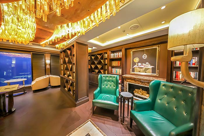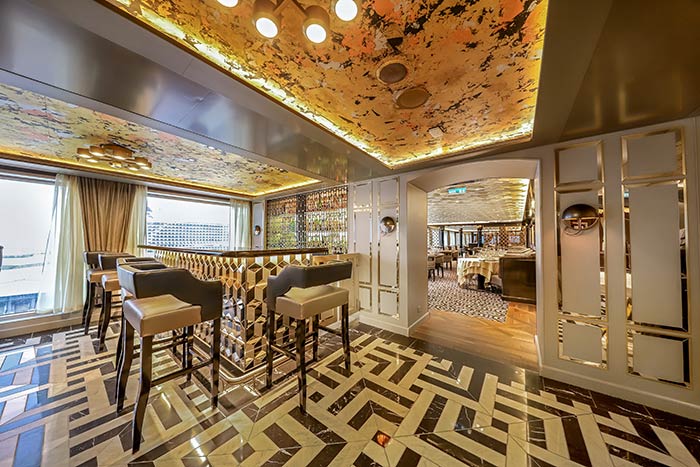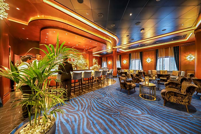 Es gibt wenige Schiffe, die ihre Passagiere von der ersten Sekunde an in eine ganz andere Welt entführen als die, die man am Hafenterminal zurückgelassen hat. Wer die Seven Seas Explorer betritt, taucht von der ersten Minute an in eine Welt der Kunstwerke, des Designs, der edlen Materialien. Eine Ankunft mit filmreifen Wow-Faktor. Da sind die beiden geschwungenen Freitreppen mit ihren Marmorstufen und den kunstvollen Geländern, darüber ein riesiger Kronleuchter aus Muranoglas. Übrigens nur einer von 473 handgefertigten Leuchtern auf diesem Schiff, wenngleich auch der imposanteste. Oder auch die über 2500 Kunstwerke an Bord, von Frank del Rio, dem Chef der Muttergesellschaft NCL-Holding und geistigem Vater der Seven Seas Explorer, höchstpersönlich ausgesucht. Unter ihnen echte Picassos, Chagalls, Miros oder bekannte zeitgenössische Künstler. Dazu ausgefallenste Werke wie die fast drei Tonnen schwere Bronzeskulptur, einer tibetischen Gebetsmühle nachempfunden, für die eigens die dortige Bodenstruktur auf dem Schiffsdeck verstärkt werden musste. Oder ganz einfach Details wie die schokoladenfarbigen Bodenfliesen aus Leder in der eleganten Bord-Bibliothek. Über 4200 Quadratmeter Marmor, meist aus Carrara, wurden verbaut, dazu Granit und edle Natursteine. Auch der Rezeptionsbereich könnte mit seinem Lounge-Charakter und der stylischen Einrichtung eher in einem Grandhotel stehen.
