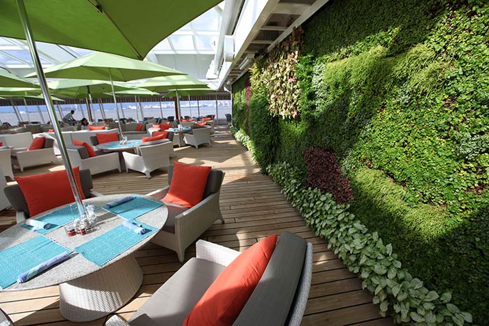 Das Deck darüber trägt den Namen Tiffany nicht zu Unrecht: die edlen Boutiquen lassen die Liga erkennen, in der hier gespielt wird: renommierte Juweliere, bekannte Nobelmarken aus der Fashion-Welt. Das kleine Bistro daneben ist immer bestens aktuell bestückt – von Frühstück, Mittagssnacks, Kuchenbuffet und abendlichen Tapas reicht das Angebot an der Bar und Kaffeestation, vor der abends auch mal zu später Stunde reichhaltige Buffets für die letzten Heimkehrer von Landausflügen aufgebaut werden.