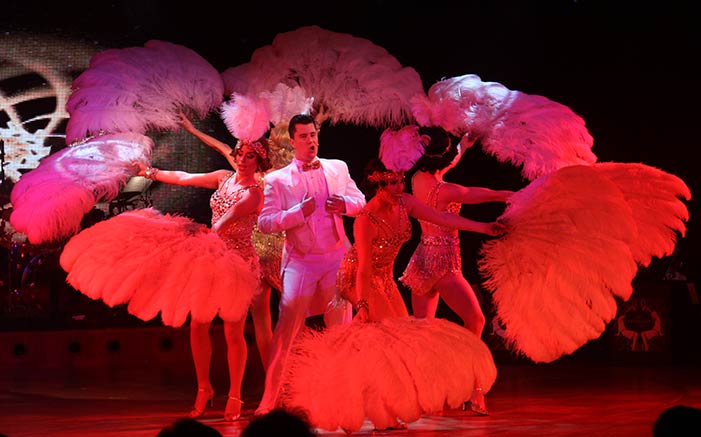 In Fahrtrichtung liegt die in Bordeaux-Farben getauchten Galaxy-Lounge mit ihren Sitzbänken und Fauteuils, ein eher intimes Theater. Die Shows hier sind farbenprächtig, die Tänzerinnen und Sänger hübsch, die Choreografie ist nett. Auch Comedy-Shows und Konzerte von Gastkünstlern finden hier statt. Aber auch nach hinten bietet das Deck 6 Animation und Unterhaltung bis in die Nacht: Im Starlite Club und seiner schönen Rundbar mit den roten Sesseln wird auf der großen Tanzfläche zu Disco- oder Livemusik abgetanzt, hier kann man auch den richtigen Swing in den fast täglichen kostenfreien Kursen lernen, an denen auch zur Freude der alleinreisenden Damen die Gentlemen Host der Crystal Symphony teilnehmen.