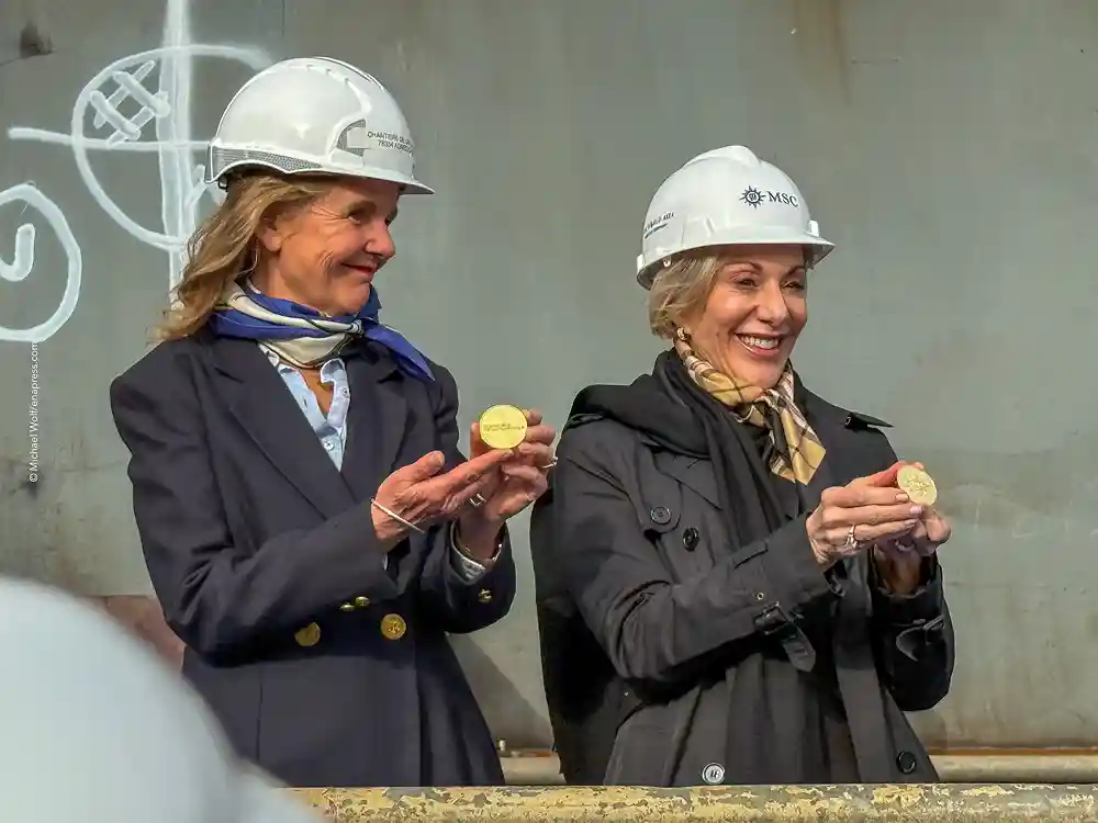 Heute fand zudem die traditionelle Münzzeremonie für die MSC World Atlantic statt, bei der die Taufpatinnen der Reederei und der Werft symbolisch Gedenkmünzen in das Schiff legen, um den Bau zu segnen und dem Schiff Glück zu bringen. Die MSC World Atlantic wird 2027 in Dienst gestellt und im Winter 2027/28 von Port Canaveral (USA) aus in der Karibik eingesetzt.