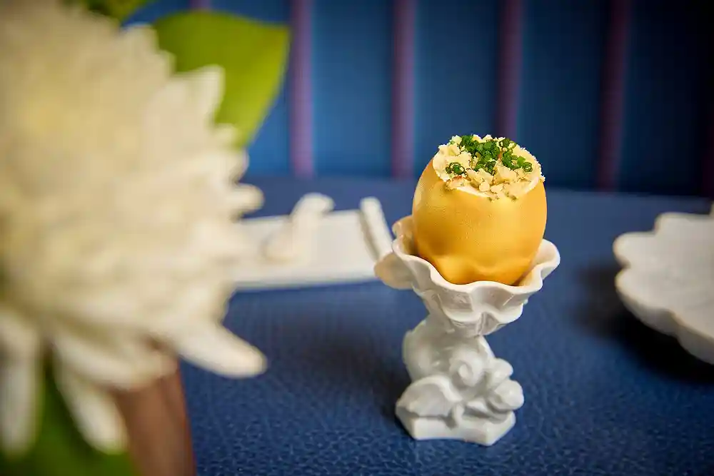 Die vegetarischen Menüs, entwickelt von Timon Lohrengel und Marcel Jücker, interpretieren das Thema Kaviar neu: Der vegetarische Kaviar entsteht durch Sphärifizierung, hier werden aromatisierte Flüssigkeiten in kleine Perlen verwandelt, die in Konsistenz und Optik an Kaviar erinnern – jedoch komplett pflanzlich sind, wie Yuzo, Safran-Tapioka, Chili-Paprika oder Granny Smith. Diese Technik stammt aus der Molekularküche, die in den 1990er-Jahren durch visionäre Köche wie Ferran Adrià geprägt wurde. „Wir wollten zeigen, dass Genuss und Raffinesse keine Frage bestimmter Produkte sind, sondern der Idee dahinter“, erklärt Timon Lohrengel, Senior Corporate Executive Chef für Hapag-Lloyd Cruises. „Dieses Menü steht sinnbildlich für den Innovationsgeist, der uns antreibt – klassische Gourmettradition verbunden mit kreativer, zeitgemäßer Leichtigkeit.“