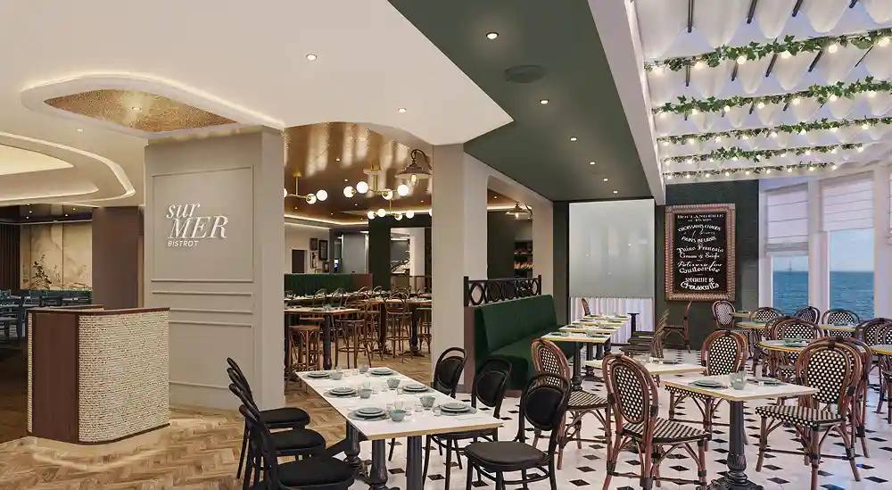 Willkommen sind auch Familien, „auch wenn wir uns nie als Familienschiffe vermarktet haben, stellen wir fest, dass besonders im August viele Familien an Bord kommen“, sagt Wybcke Meier. Und die Single-Kabinen seien stets lange im Voraus ausgebucht. Deswegen gibt es nun beispielsweise im großen Speiserestaurant Atlantik im Zentrum eine raumgreifende stylische Bar, an der Gäste auch mal nur eine Kleinigkeit essen können. Das werde besonders gut von Alleinreisenden angenommen, die allein keine Tisch besetzen oder ein ganzes Menü essen möchten. Doch wer will, kann sich sämtliche Mahlzeiten vom Frühstück bis zum Abendessen am Tisch servieren lassen. Es gibt an Bord fünf Inklusive- sowie fünf Zuzahlrestaurants.