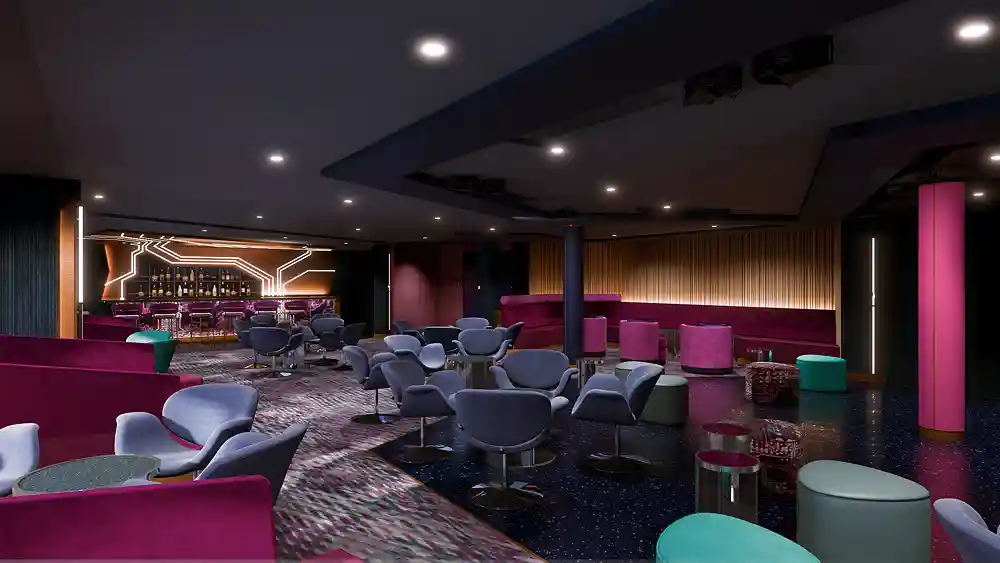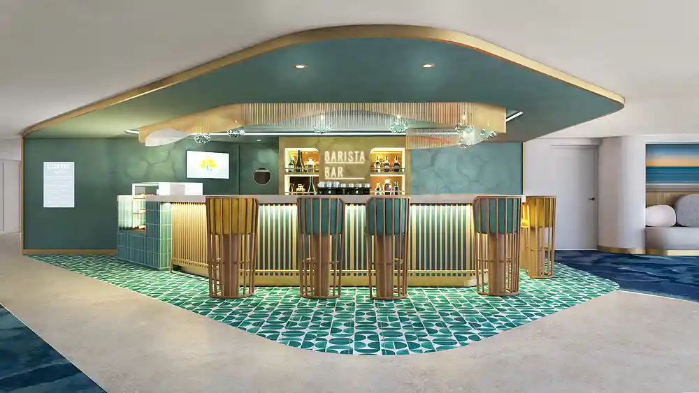 Neu ist auch, dass sich die Captain’s Bar auf Deck 12 direkt über der Brücke befindet. Vor allem Stammgäste sehen die Unterschiede zwischen den beiden Schiffsklassen. Die Mein Schiff Relax und die Mein Schiff Flow Weiterentwicklungen der vorhandenen Schiffe der Flotte. Leichte Änderungen habe man bei der Farbgebung und beim Design gemacht. Auch das Prinzip der „Neighbourhoods“ auf TUI Cruises-Schiffen, das man allerdings schon von den großen Schiffen der Icon-Klasse kennt, die wie TUI Cruises ebenfalls zur Royal Caribbean Gruppe gehören. Mit Neighbourhoods, eigentlich Stadtviertel, sind Bereiche gemeint, die einem bestimmten Design unterliegen, und die auf angelegten Wegen miteinander verbunden sind. Intuitiv solle man das Schiff erfahren, zugleich sollen durch die verschiedenen Bereiche, die mal lebhaft, mal ruhig, mal drinnen und mal draußen sind, die Passagiermassen entzerren, sodass nie der Eindruck von zu vielen Menschen an einem Ort entsteht.