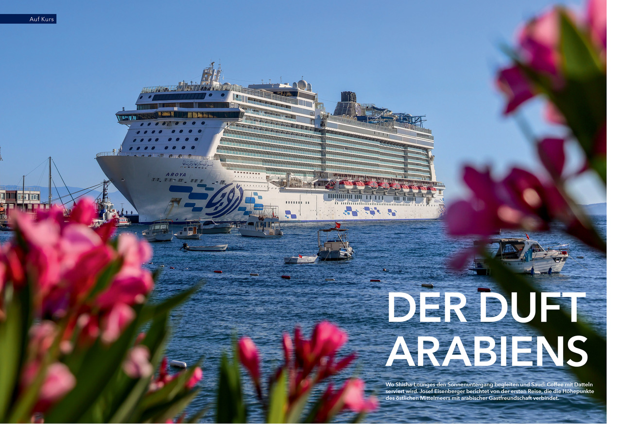 „Der Duft Arabiens“ heißt eine weitere Reportage aus der neuen AN BORD 4/2025. Mit der AROYA von Aroya Cruises geht es zu Zielen im östlichen Mittelmeer, ein ungewöhnliches Borderlebnis und saudische Gastfreundschaft inklusive.