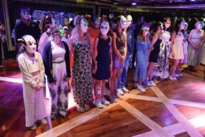 Die Weltsprache ist an Bord durchaus gefragt. Zum einen reisen Italiener und Griechen gern in großer Familie, und das schließt auch jene Generation ein, die in der Schule Fremdsprachen gelernt hat. Zum andern hatte das Schiff vor seinem Wechsel in die Celestyal-Flotte ein längeres Intermezzo bei P&O Australia, und ein pfiffiger Agent hat es geschafft, früheren Fans aus Australien und Japan eine Reise im Mittelmeer schmackhaft zu machen. So ist der Strauß der Quellnationen deutlich bunter als die Reihe der Zielländer: Griechenland, Italien, Montenegro und Kroatien….
