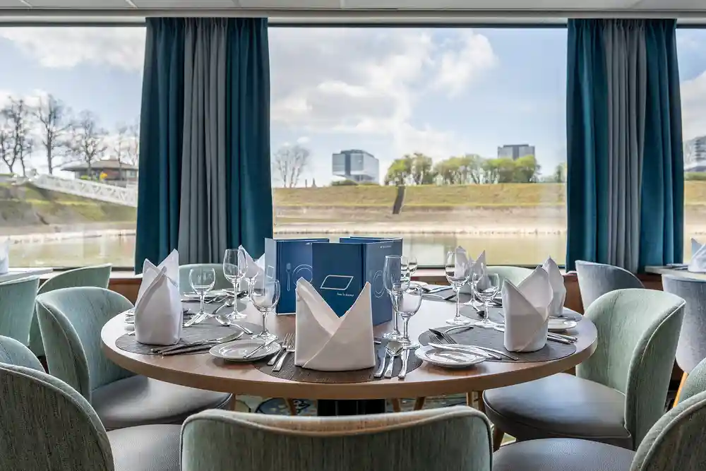 Im Mittelpunkt der Erneuerung steht ein fein abgestimmtes Farbkonzept: harmonische Töne treffen auf stilvolle Details, die ein ruhiges und zugleich einladendes Ambiente schaffen. Die Innenräume wirken modern und offen und vermitteln durch den gestalterischen Ansatz ein Kreuzfahrterlebnis ganz im Einklang mit der Markenphilosophie des Slow Cruising, das für die Gäste ein ganzheitliches Erlebnis von vorbeiziehendem Flusskino und einem Wohlfühlerlebnis an Bord bereithält.