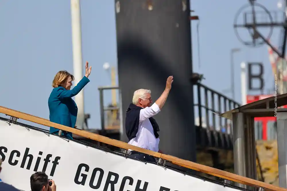 Bundespräsident Frank-Walter Steinmeier und Elke Büdenbender bei einer Ausfahrt mit den Seenotkreuzer “Hermann Rudolf Meyer” und TB “Christian”.