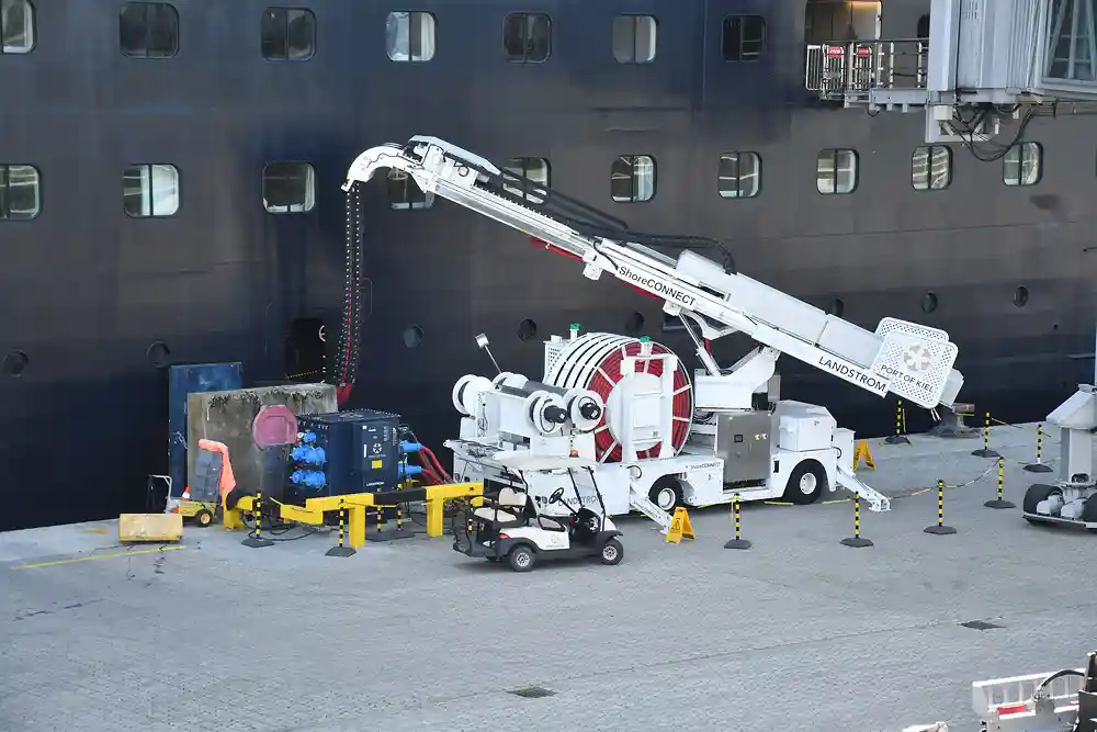 Ziel des Seehafens sei es, 90 Prozent der Anläufe von Fähr- und Kreuzfahrtschiffen ans Landstromnetz zu bringen. Durch die Fertigstellung und Inbetriebnahme der zweiten Landstromanlage am Ostseekai könne bereits in diesem bei Kreuzfahrtschiffen eine Landstromquote in Kiel von 75 Prozent erreicht werden. „Wir sind da auf einem sehr guten Weg“, sagt Claus. Eine Quote von 100 Prozent der Anläufe sei jedoch unrealistisch, da es immer Tage gebe, an denen durch Wetter oder Arbeiten an der Anlage die Anschlüsse nicht zur Verfügung stünden. Bei der Gefahr von Starkwinden müssen die Schiffe aus Sicherheitsgründen ihre Maschinen ständig in Betrieb haben.