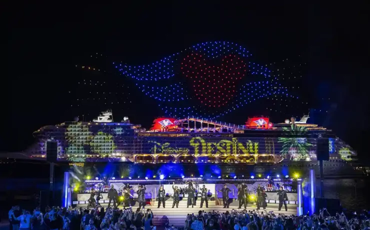 Pressemitteilung Feierliche Taufe: Am Abend des 11. November 2025 wurde das neueste Schiff der Disney Cruise Line Flotte in Port Everglades, Fort Lauderdale, mit einer unvergesslichen Show getauft. Die Zeremonie bot ein echtes Disney Erlebnis: Live-Musik, atemberaubende Drohnenshows am Nachthimmel und spektakuläre Projektionen auf dem