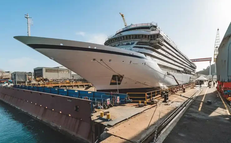 Mit Wasserstoff-Antrieb: „Viking Libra“ im Fincantieri-Baudock in Ancona aufgeschwommen