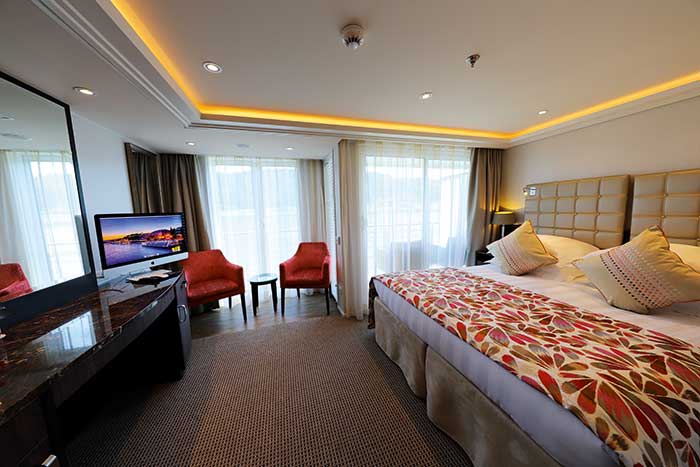 Das neue Schiff ist baugleich mit der im letzten Jahr in Dienst gestellten AmaKristina (siehe an Bord 03/2017). Sie bietet maximal 154 Gästen Platz. In der großen komplett mit Panoramafenstern und schönen Sitzlandschaften versehenen Lounge mit Bar und Außenbereich gibt es eine 24-Stunden Kaffee- und Wasserstation sowie kleine wechselnde Buffets zu verschiedenen Tageszeiten. Ein separater Bereich mit künstlichem Kamin und einer Bücherecke bietet zusätzliche Intimität, eine kleine Boutique Kaufmöglichkeiten auch lokaler Souvenirs. Auf dem Deck darunter befindet sich das große Hauptrestaurant mit seinen großzügigen Buffets und à-la-carte-Gerichten. Ein weiteres kleines Restaurant mit Panoramablick am Heck der AmaLea, dem Chef’s Table, bietet exquisite besondere Menüs, direkt aus der Showküche. In allen Restaurants sind zu den Mahlzeiten gute Weine inkludiert. AmaWaterways ist für seine gute Küche bekannt – die Reederei zahlt an den Caterer eine der höchsten Food-Raten in dieser Branche. Die Kabinen sind modern gestylt, verfügen unter anderem über iMacs zum Surfen und für interaktive kreuzfahrtbezogene Beschäftigungen. Einige der Kabinen haben sogar Twin-Balkone, also einem französischem und einem „normalen“ Balkon mit Sitzgelegenheiten. Das Sonnendeck bietet neben den bequemen Liegen einen großen Pool mit integrierter Bar. Die AmaLea wird in dieser Saison siebentägige Kreuzfahrten auf der Donau zwischen Vilshofen und Budapest absolvieren, in der Adventszeit dann vier besondere Weihnachtsmarkt-Cruises.