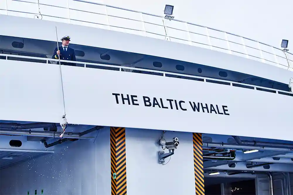 Die als reine Frachtfähre konzipierte The Baltic Whale bietet neben dem Platz für insgesamt 66 Lkw auf beiden Decks auch die Möglichkeit, Gefahrgut – wie beispielsweise Industrieprodukte und Batterien – effizient und planbar zu transportieren. Dadurch kann mehr Fracht auf diese Fähre verlagert werden, was zusätzliche Kapazitäten für Pkw und Passagiere auf den übrigen Scandlines-Fähren schafft – insbesondere in der Hochsaison. Mit dem Einsatz der neuen Fähre erhöht die Reederei ihre Transportkapazität für Frachteinheiten auf der Route Rødby – Puttgarden um 27 Prozent. In das Projekt hat die Reederei rd. 84 Mio. Euro investiert.