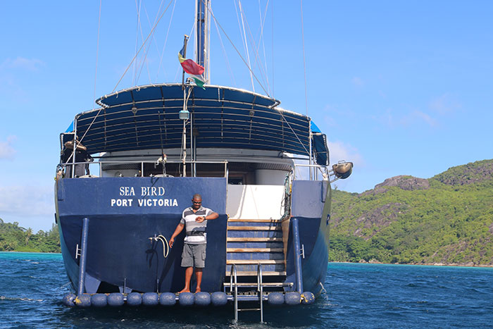 Ein tropischer Regenguss prasselt am morgen früh auf das Wellblech-Vordach des Flughafens von Victoria. Die Hauptstadt der Seychellen auf Mahé begrüßt die Nachtflug-müden Besucher launisch. Und die Taxis verlangen für die wenigen Kilometer in die Stadt stolze Preise wie in Zürich. Die Yachten von Silhouette Cruises haben neben dem Inter-Island-Quay festgemacht, wo die Fähren nach Praslin und La Digue ablegen. Gegen Mittag sticht die Sea Bird in See und umrundet den grünen Nordzipfel Mahés in Richtung Baie Beau Vallon, der ersten Station der Reise.