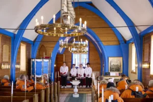 Ausschlafen ist am nächsten Tag keine Option. Wir müssen Polarstiefel anprobieren, prüfen, ob die orangefarbenen Parkas passen, und natürlich steht auch das Sicherheitsbriefing an. Gleichzeitig steuert die LE COMMANDANT CHARCOT entschlossen auf die Blosse­ville-Küste zu. Sie liegt im südlichen Teil der Ostküste Grönlands und gehört zu den abgelegensten und unzugänglichsten Küstenstreifen der gesamten Arktis.
